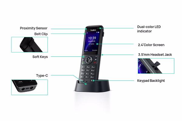 O Yealink AX83H é um telefone Wi‑Fi portátil de nível empresarial, equipado com tela colorida de 2,4” (240×320) e projetado para comunicação clara em ambientes totalmente sem fio. Ele suporta até 4 contas SIP e oferece áudio Optima HD com Smart Noise Cancellation, garantindo chamadas mais nítidas em qualquer ambiente.