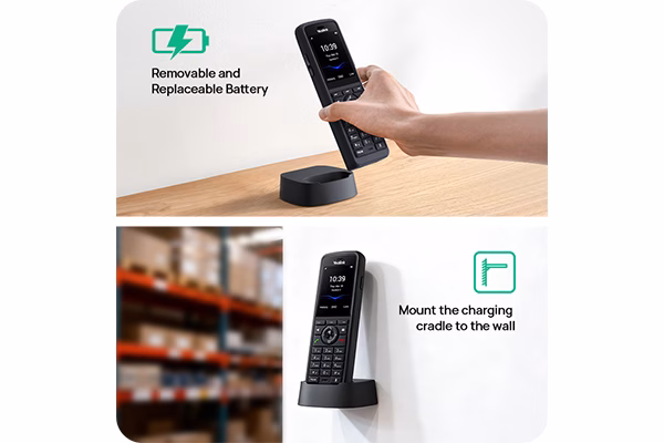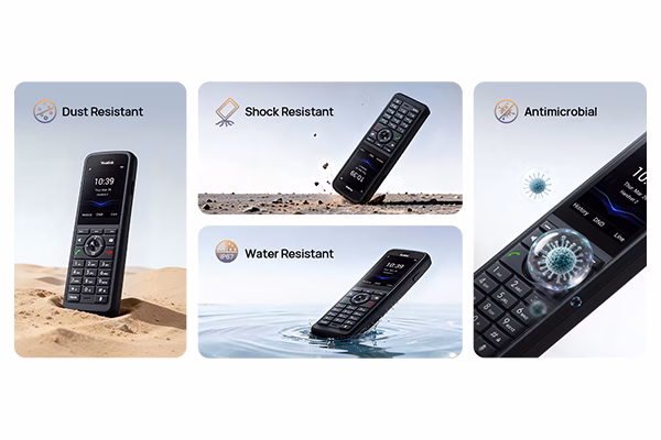 O Yealink W59R Pro se destaca como um handset DECT robusto e profissional, ideal para ambientes exigentes, oferecendo resistência IP67 com proteção contra quedas de até 2 metros, água, poeira e materiais antimicrobianos, além de áudio HD com FNR e microfones duplos para conversas claras mesmo em locais ruidosos. Sua operação é ágil graças à tela de 2,4″, teclas físicas adicionais e design ergonômico, enquanto o Bluetooth 5.2, o suporte a headsets DECT e o roaming contínuo em sistemas single e multi-cell (W70B/W75B/W80B/W90B) garantem mobilidade total sem perda de qualidade. Para proteger equipes em campo, o W59R Pro incorpora botão de emergência e alarmes inteligentes — como man-down, no‑movement e running alarm — tornando-o ideal para operações críticas. Com bateria de até 28 horas de conversação e 320 horas de standby, ele entrega desempenho ininterrupto ao longo de todo o dia.